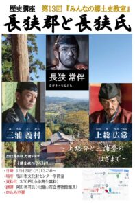 て第13回「みんなの郷土史教室」が行われます。今回のテーマは、「長狭郡と長狭氏 ~上総介と三浦介のはざまで」です。